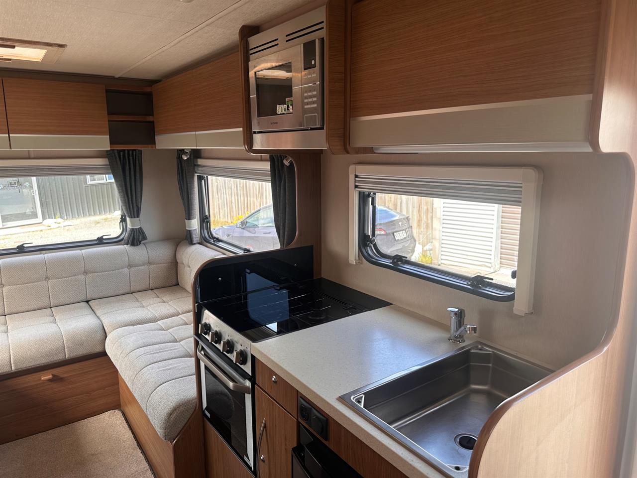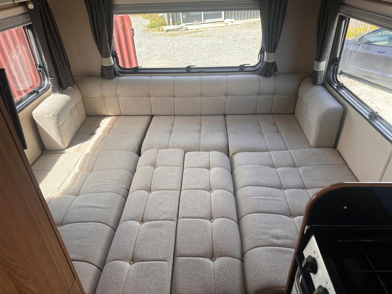 The 2017 Autotrail Tribute T625 is a sought-after 2-berth motorhome built on the dependable Fiat Ducato 2.2 L diesel chassis. Featuring a smooth 6-speed Comfort-matic gearbox and a well-thought-out layout, its designed for comfort and practicality. The standout rear U-shaped lounge offers excellent panoramic views and converts easily into a large double bed. A high-spec central kitchen and a fully equipped en-suite bathroom, with separate shower, make long trips or weekend getaways a breeze. Built for touring New Zealand in comfort and style, this model blends reliability, quality, and smart use of space in one neat package.